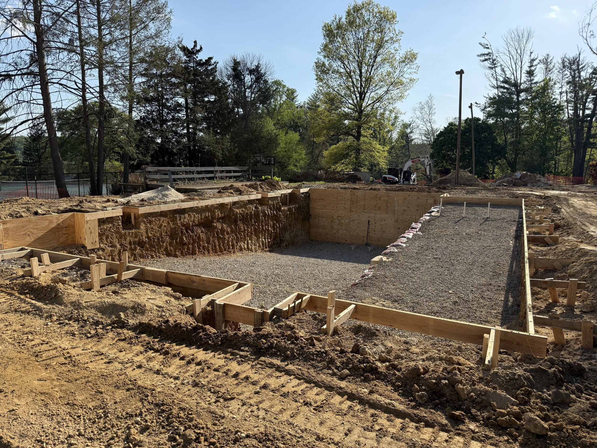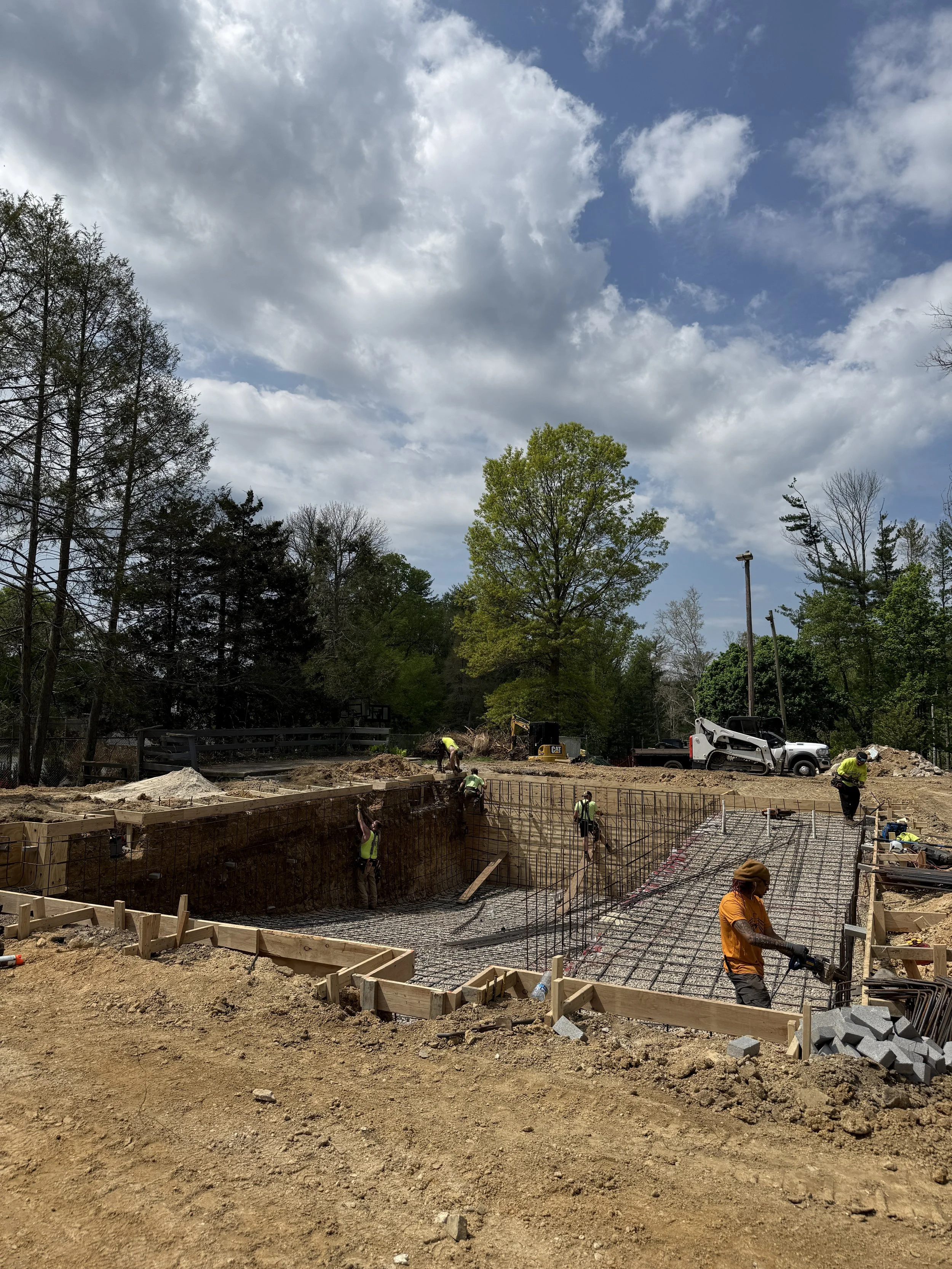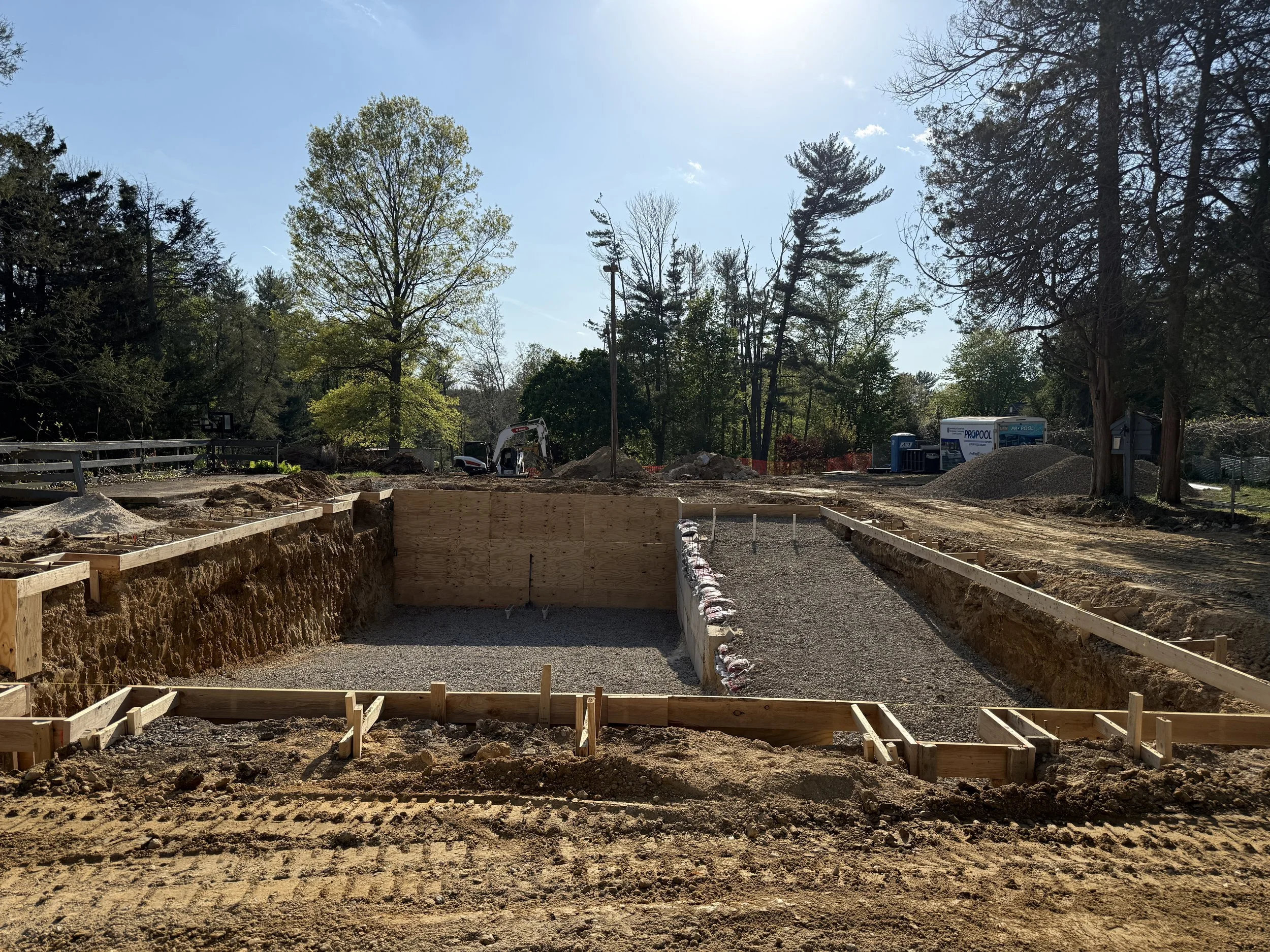 This week saw the shift from demo to rebuilding! By the end of the week Piazza and his crew had dug out the shape of the new pool and completed rebar installation! Fun fact: about one million pounds of concrete was removed from our pool area! Check out the pictures below! Next up gunnite!
